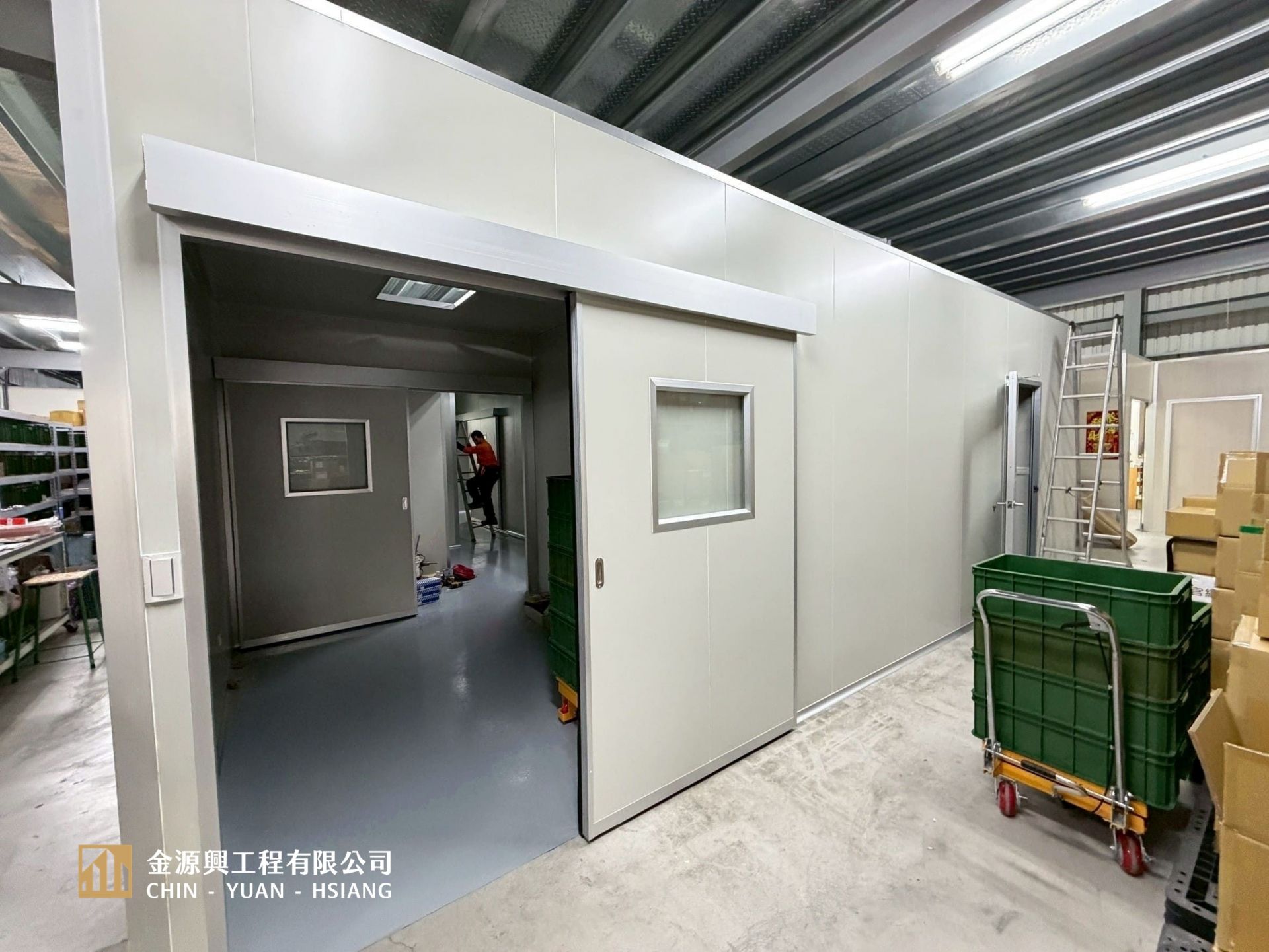 美妝代工廠庫板隔間-彰化-防火辦公室、廠房藥廠、潔淨室隔間-金源興庫板施工
